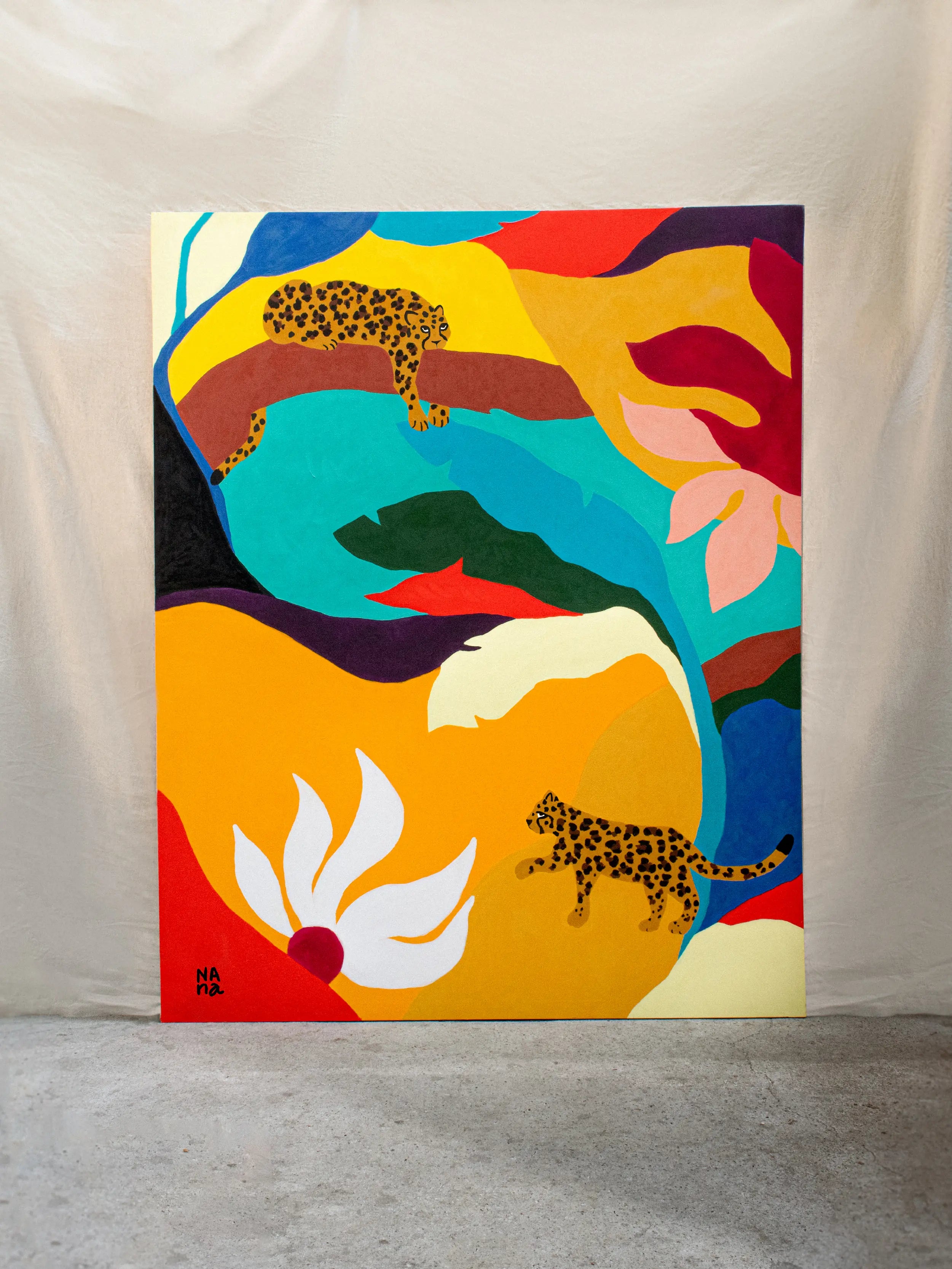 Always in line with our commitment to supporting the shelter, we wanted to participate and contribute. We donated a 200 x 160 cm canvas (from a diptych that required over 17 hours of work and 6 liters of paint) as well as a wooden surfboard painted by Nancy (Nana Galerie) to the shelter.