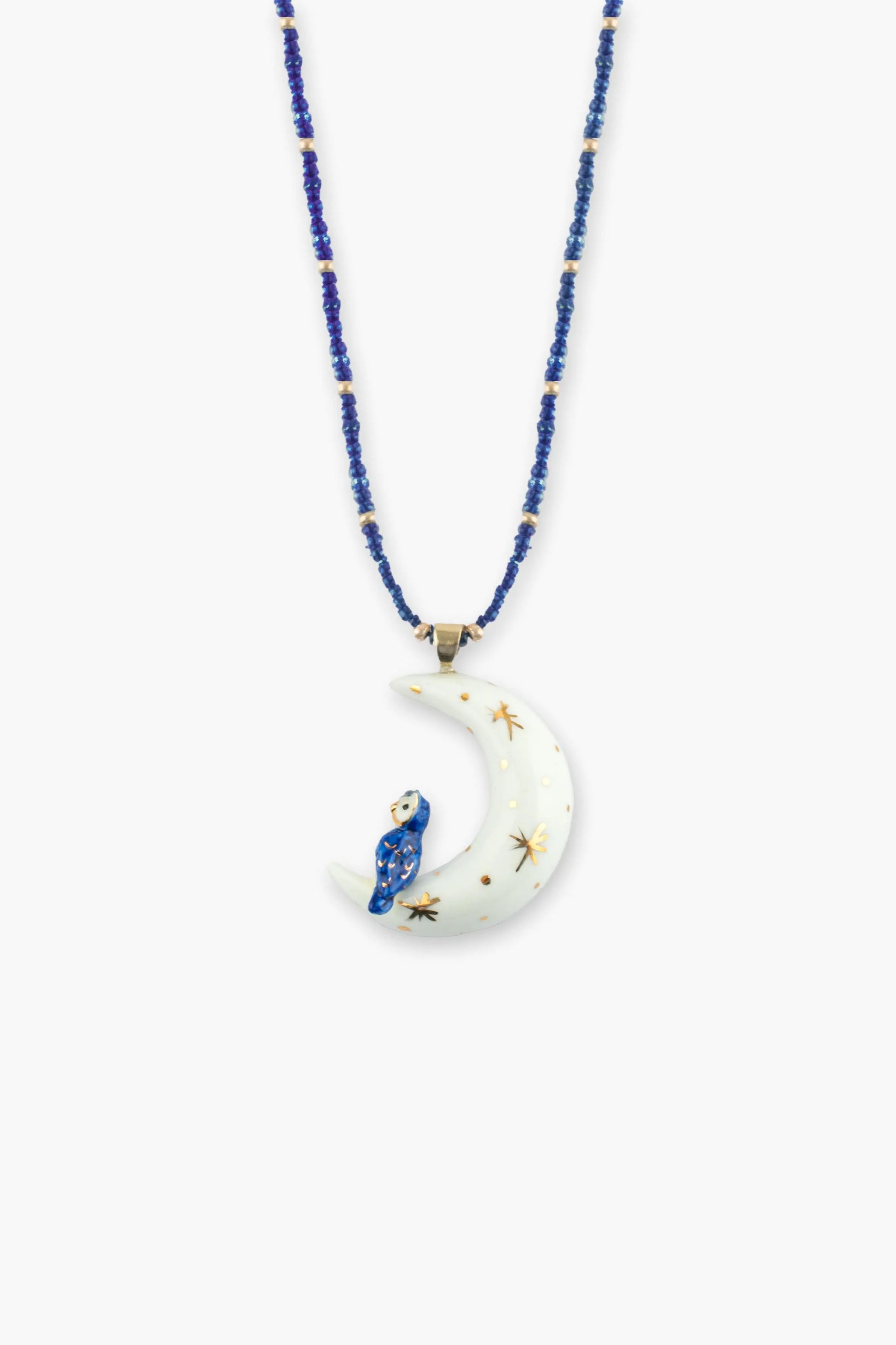 Moon and owl beaded necklace