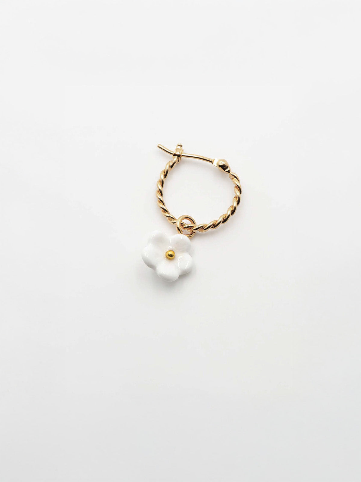 Mini orecchini a cerchio con fiori bianchi - Venduti singolarmente