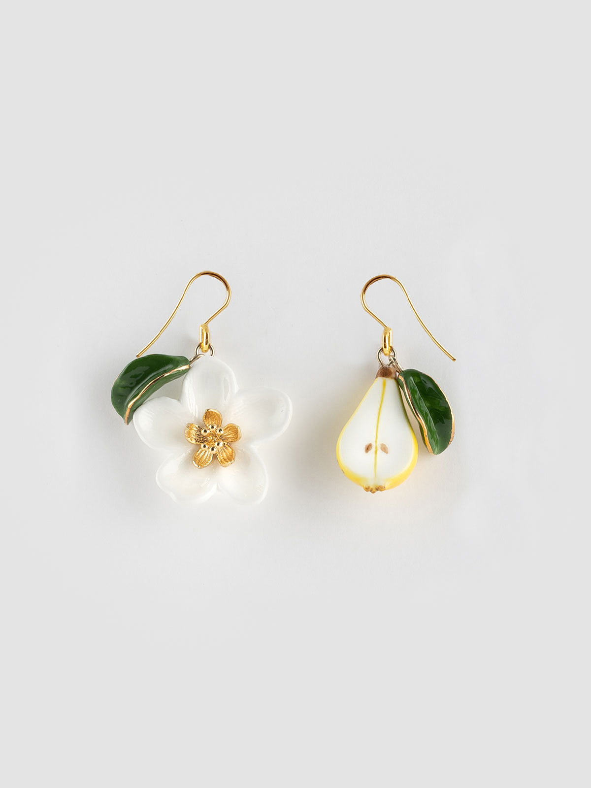 Orecchini con fiori di pero, pera e foglia