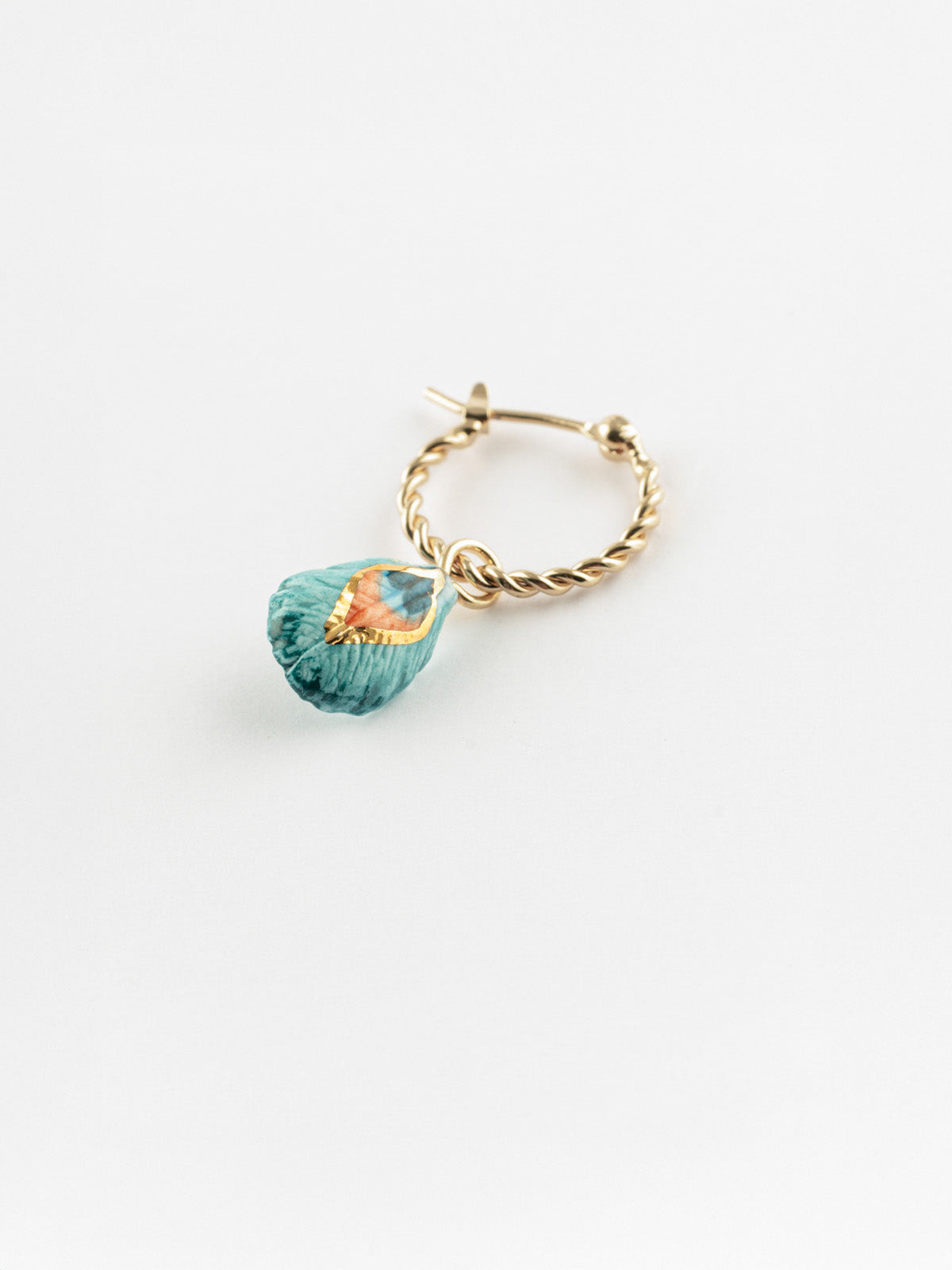 Orecchino in porcellana e ottone placcato in oro fino.
