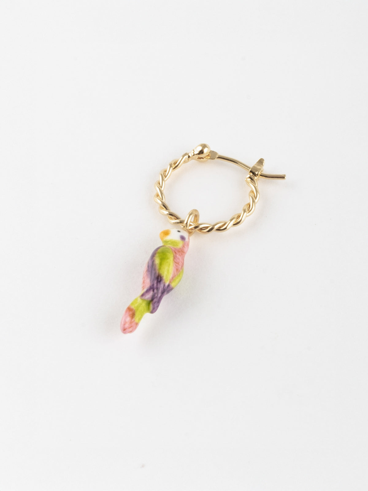 Orecchino in porcellana e ottone placcato in oro fino.