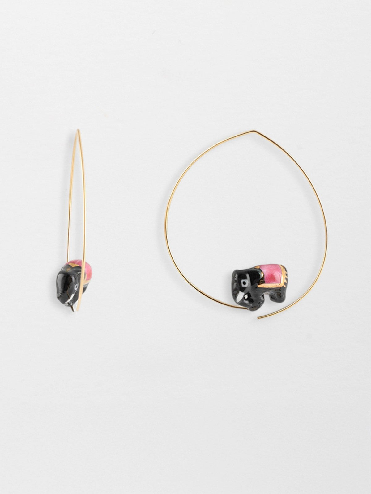 Orecchini realizzati in porcellana e ottone placcato oro. Metallo privo di nichel e ipoallergenico, di provenienza italiana.