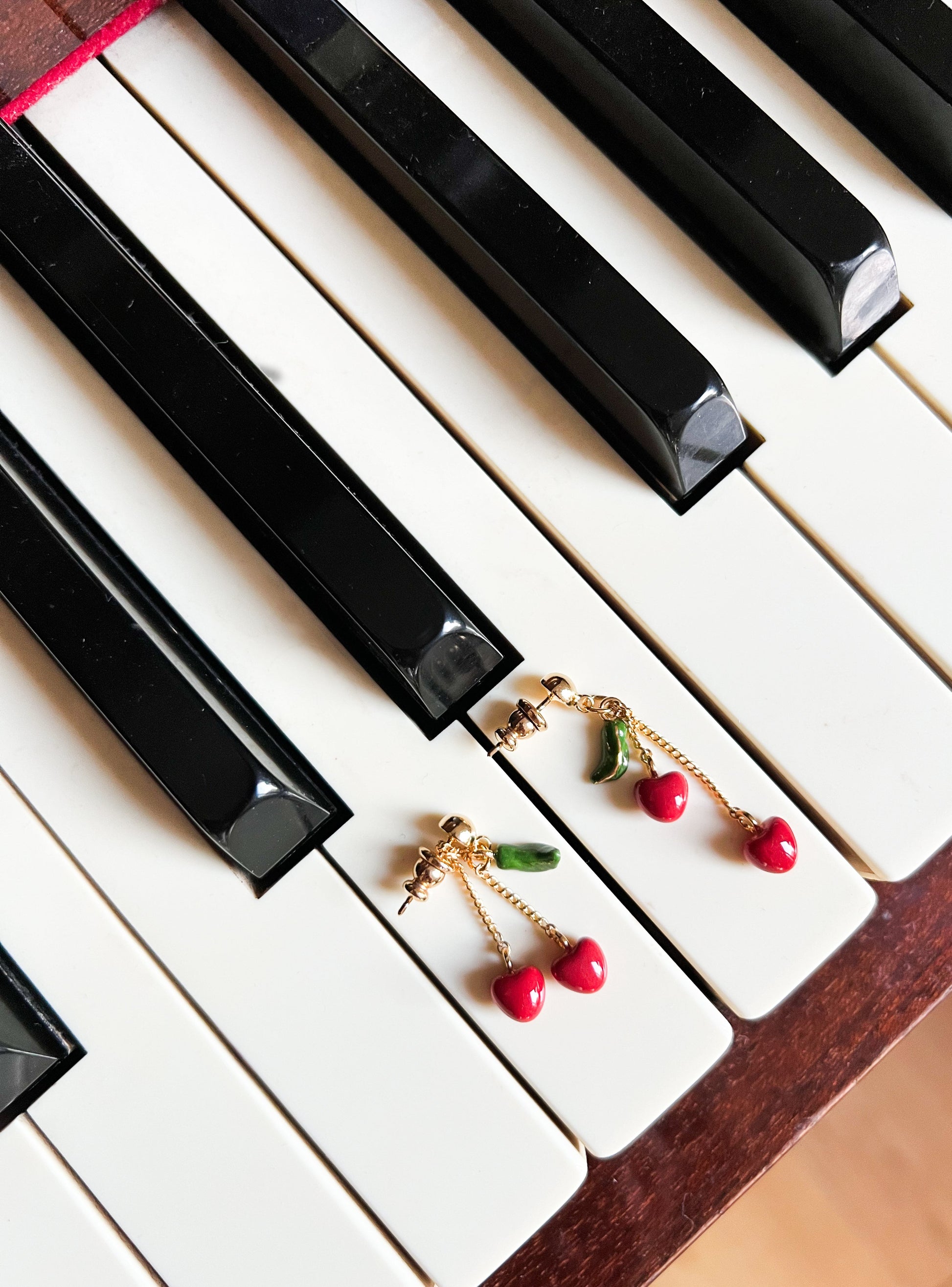 Orecchini pendenti con ciliegia e catena - Chérie Cherry