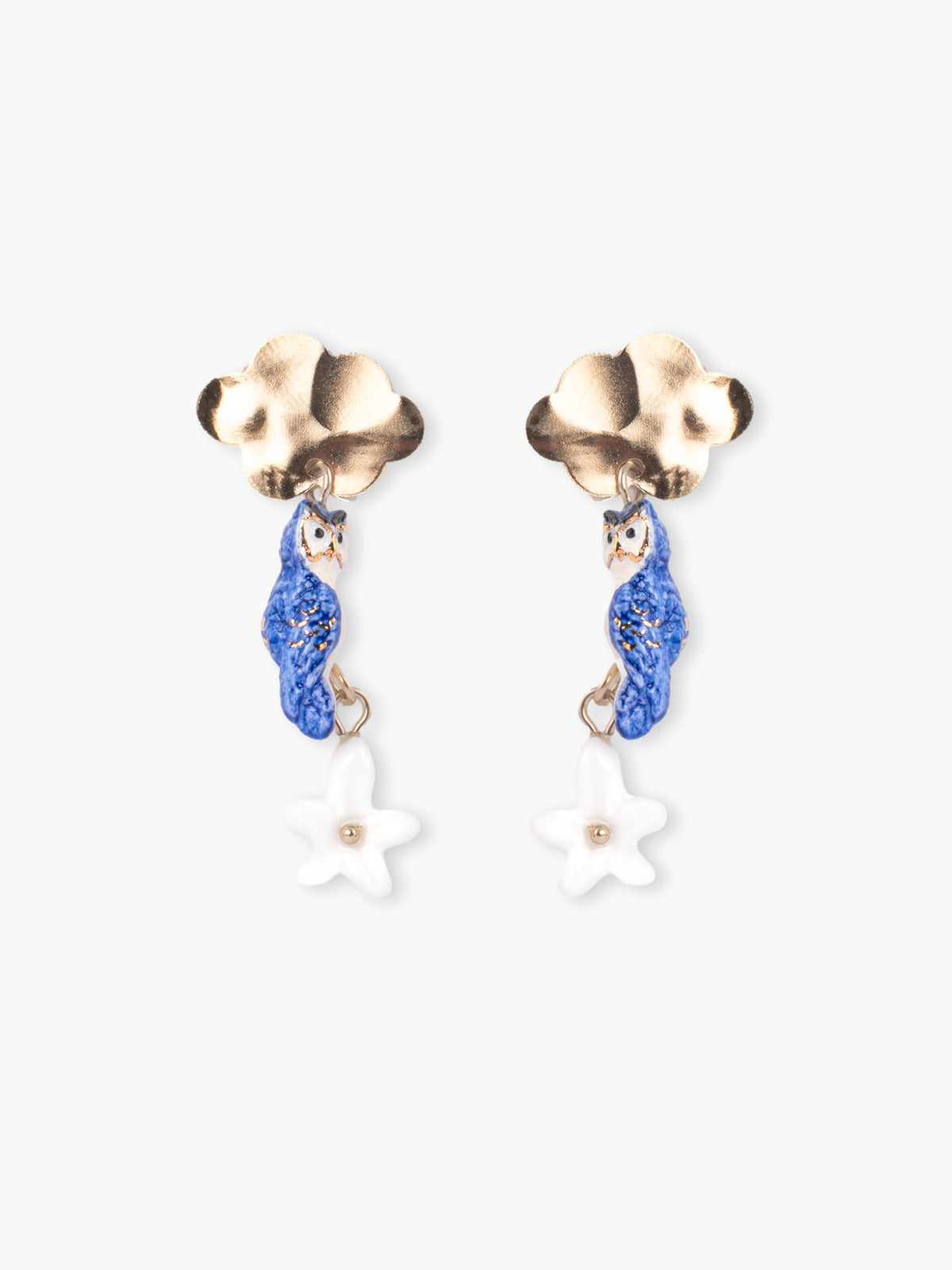 Orecchini pendenti con nuvola, gufo e gelsomino