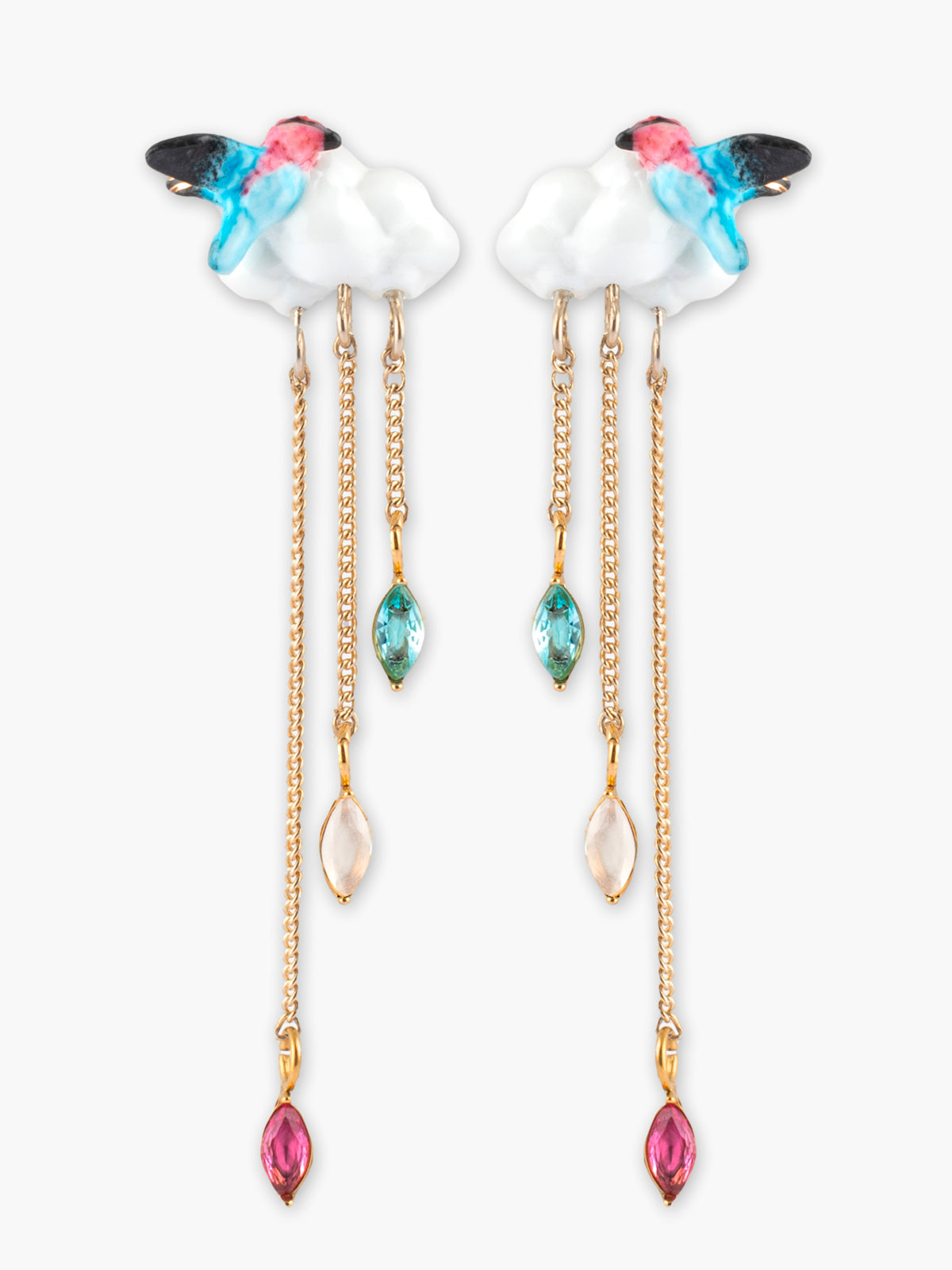 Orecchini pendenti con nuvola e colibrì