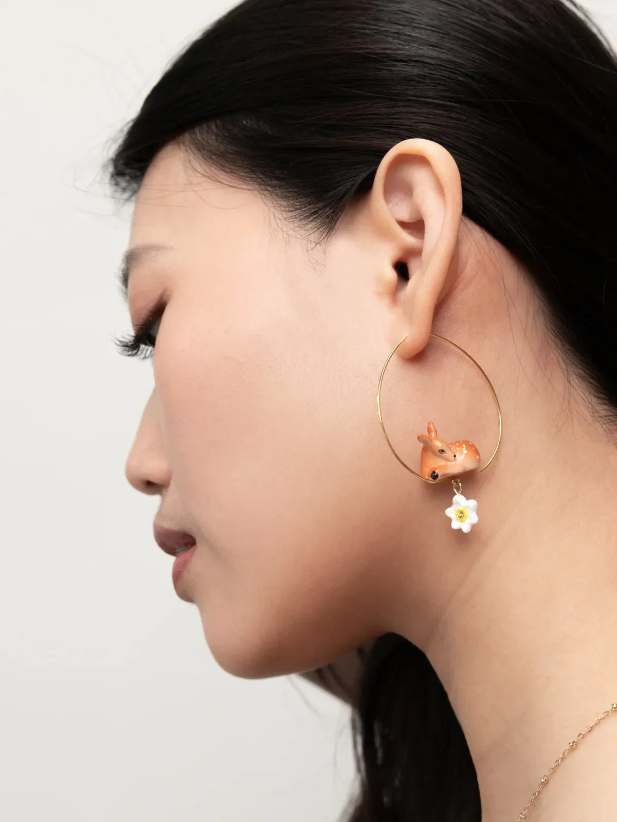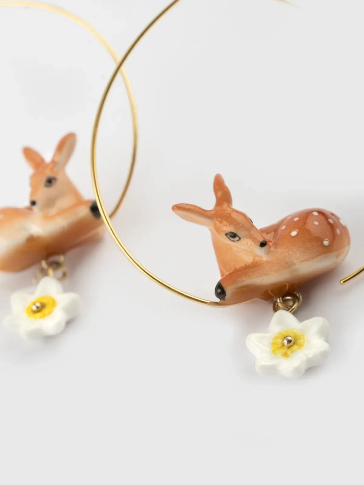 Grandi orecchini a cerchio con cerbiatta e narciso
