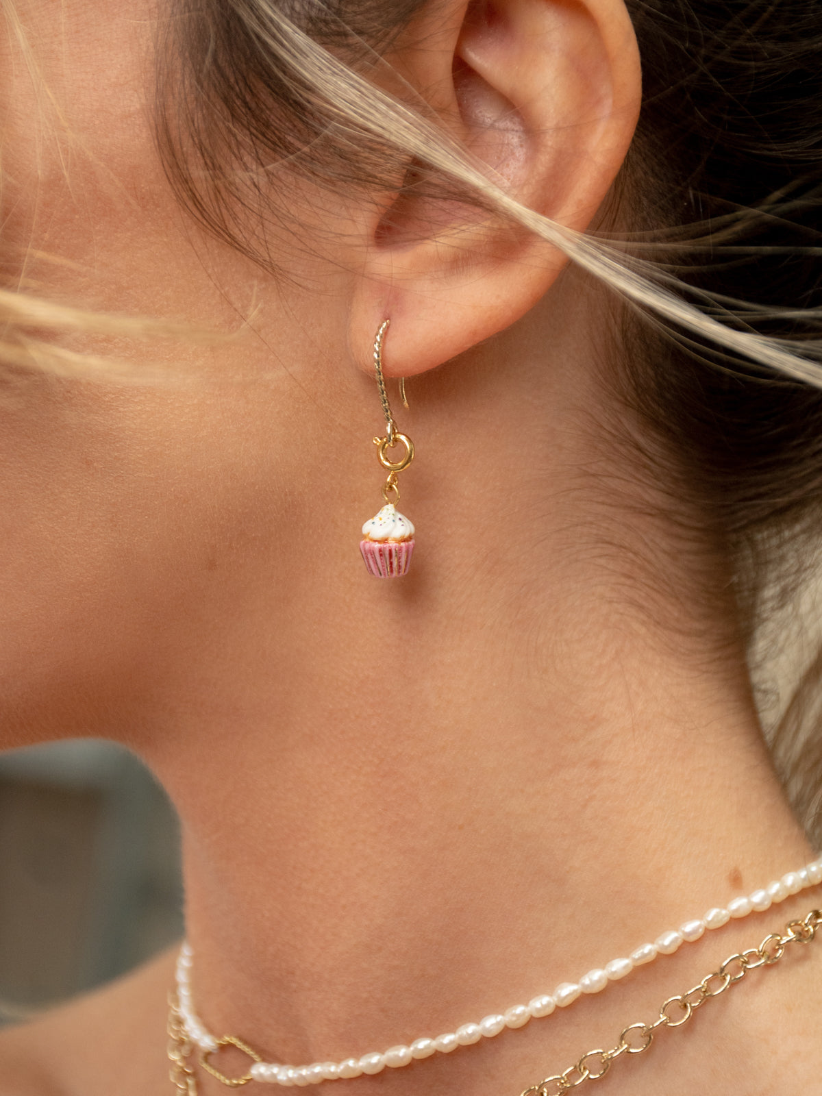 Cupcake portafortuna in porcellana e ottone placcato in oro fino.