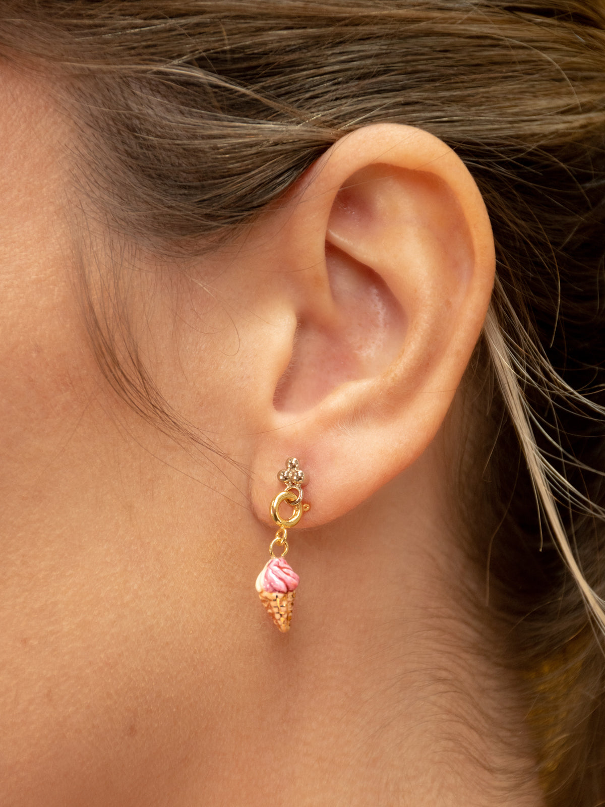 Ciondolo gelato in porcellana e ottone dorato con oro zecchino.