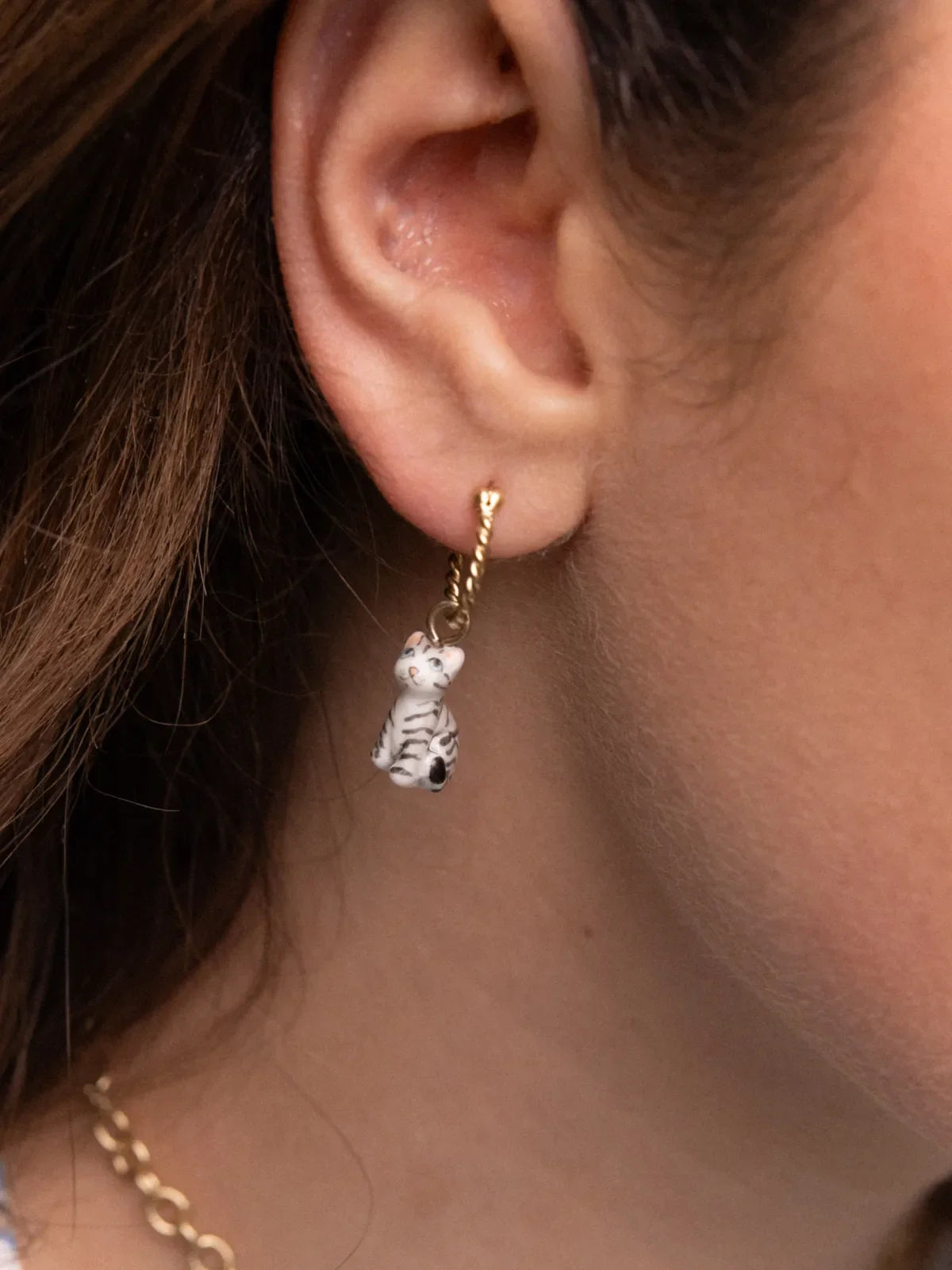 Orecchini in porcellana e ottone placcati in oro fino. Metallo privo di nichel e ipoallergenico.
