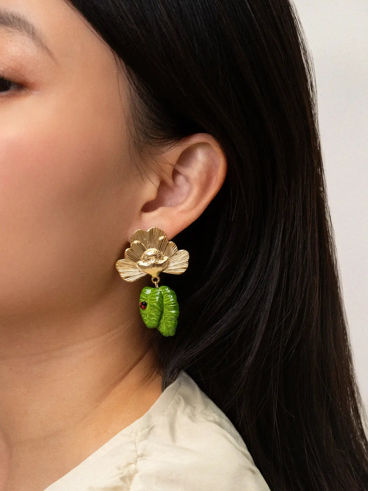 - Orecchini realizzati in porcellana e ottone placcato oro. Metallo privo di nichel e ipoallergenico, di provenienza italiana.