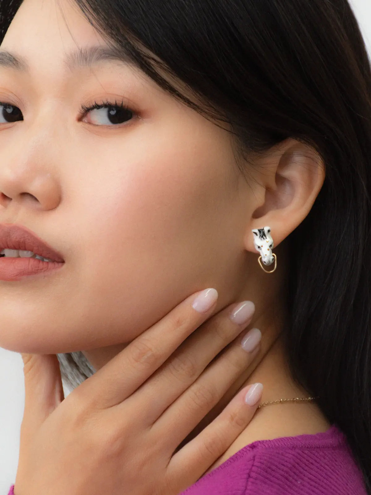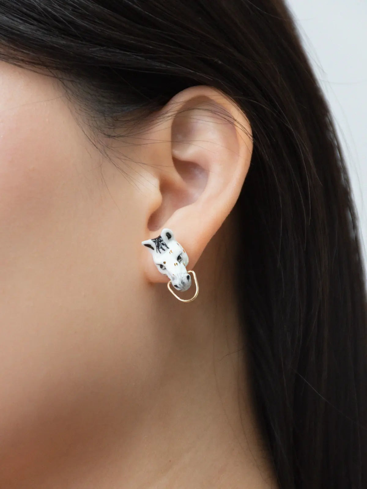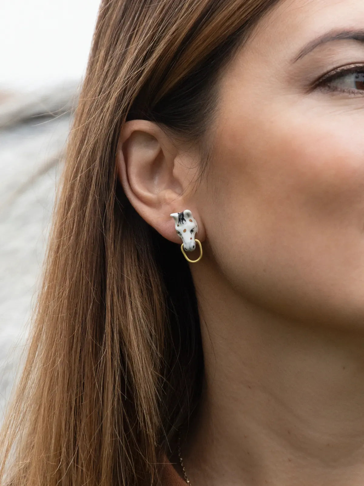 Orecchini realizzati in porcellana e ottone placcato oro. Metallo privo di nichel e ipoallergenico, di provenienza italiana.