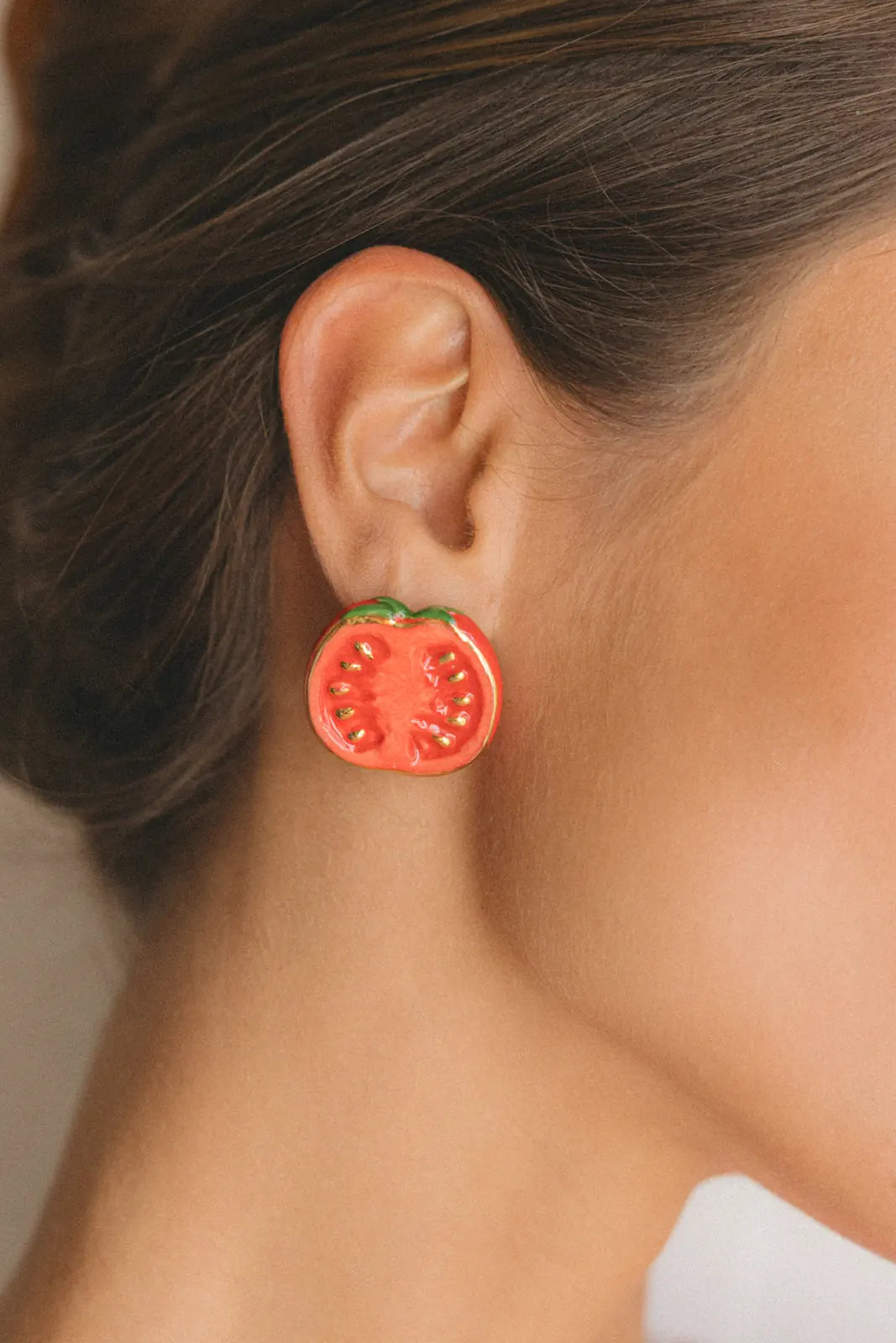 Orecchini realizzati in porcellana e ottone placcato oro. Metallo privo di nichel e ipoallergenico, di provenienza italiana.