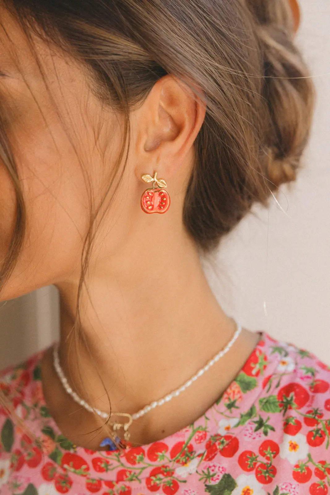 Orecchini realizzati in porcellana e ottone placcato oro. Metallo privo di nichel e ipoallergenico, di provenienza italiana.
