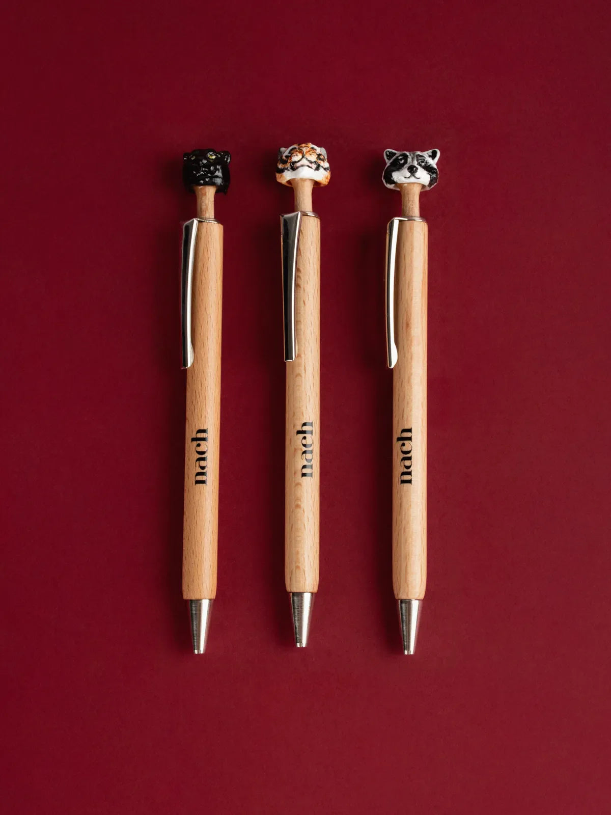 Questa penna è ispirata a Pedro, un procione salvato dalla natura selvaggia da privati. Dopo un soggiorno in un centro di recupero per la fauna selvatica, non è stato possibile rimetterlo in libertà a causa del suo status di specie aliena invasiva. Pedro è stato quindi affidato al santuario di La Tanière nel 2024.
