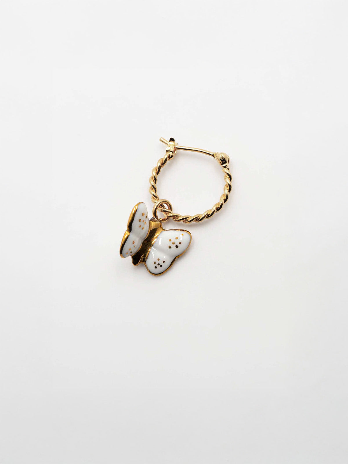 Boucle d'oreille en porcelaine et laiton doré à l'or fin.