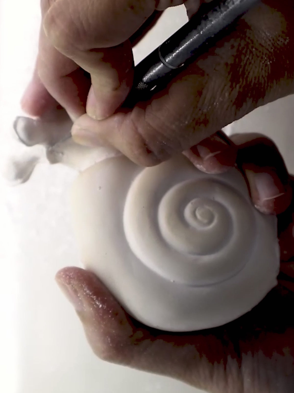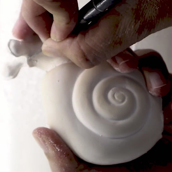 Agrafeuse escargot en porcelaine et acier inoxydable.