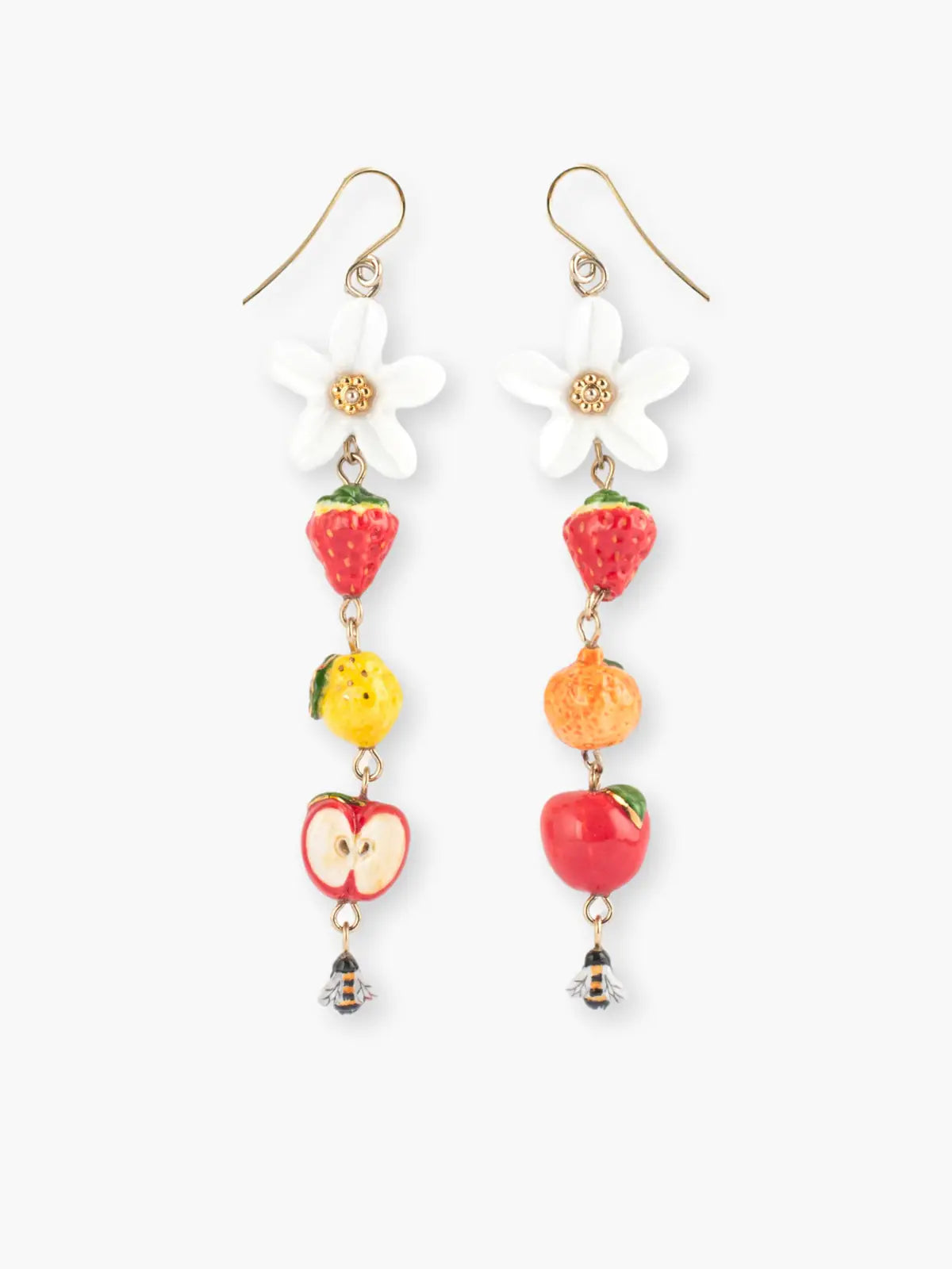 Boucles d’oreilles pendantes fleur, fruits et abeille