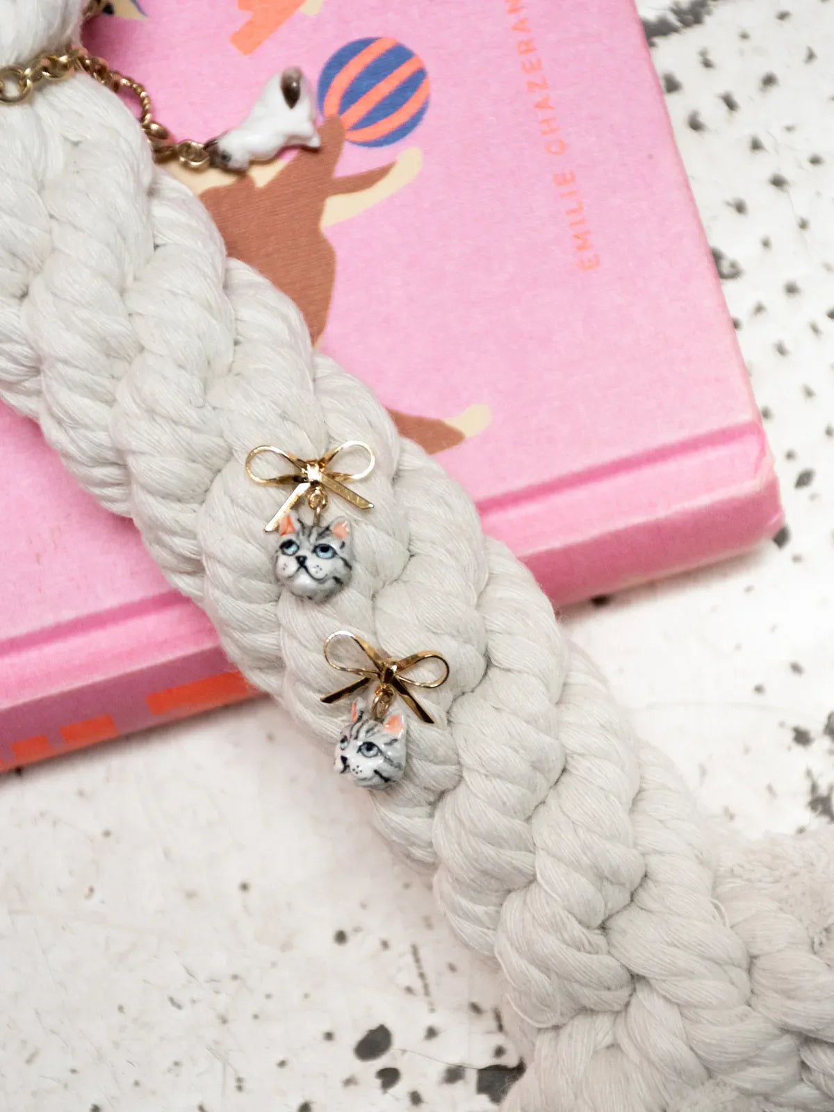 Boucles d'oreilles puces - chat tabby et nœud