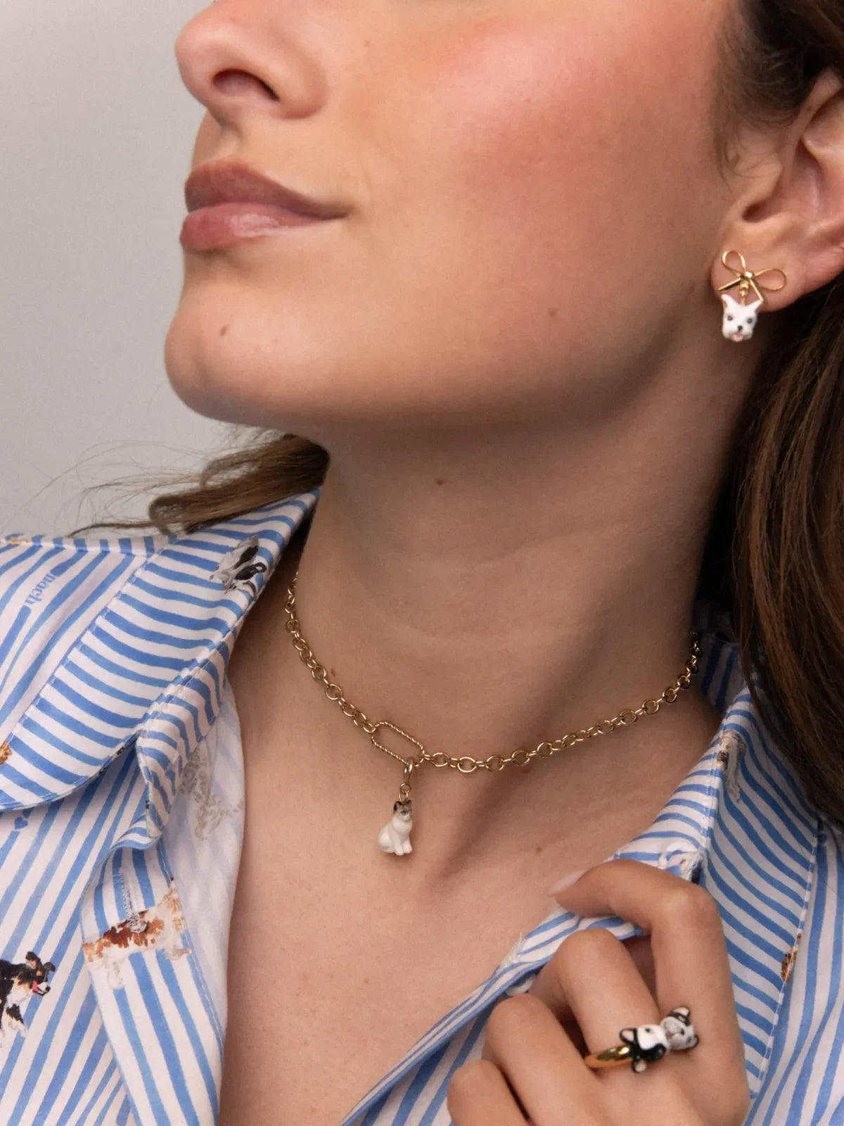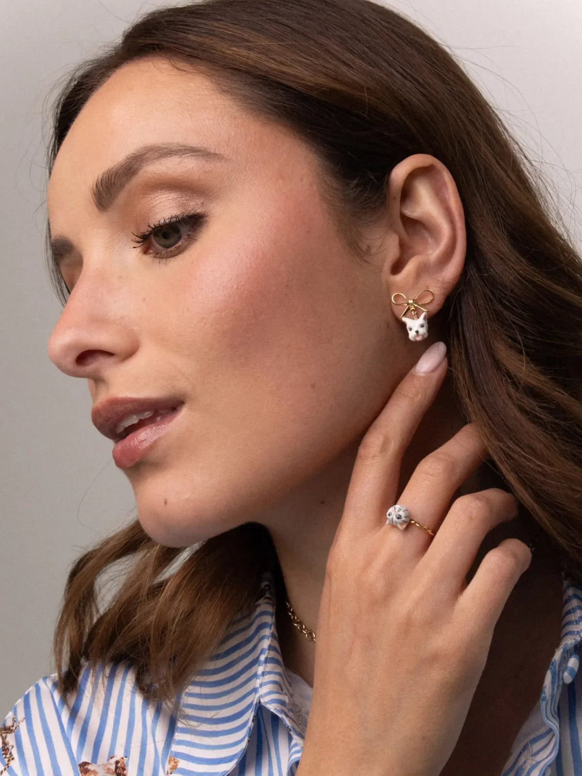 Boucles d'oreilles puces - chien Coton de Tulear et nœud