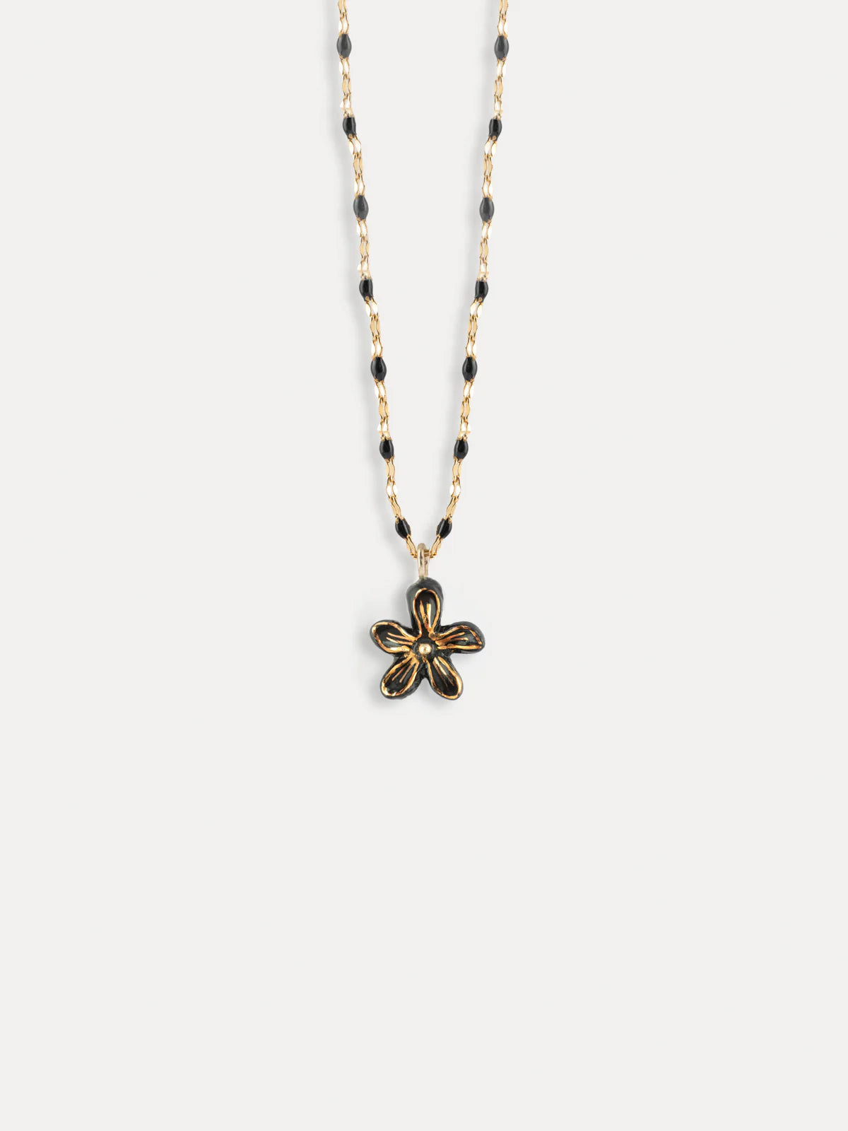 Collier en porcelaine, laiton doré à l'or fin, et perles émaillées. Métal certifié sans nickel et sans risque d’allergie provenant d'Italie.