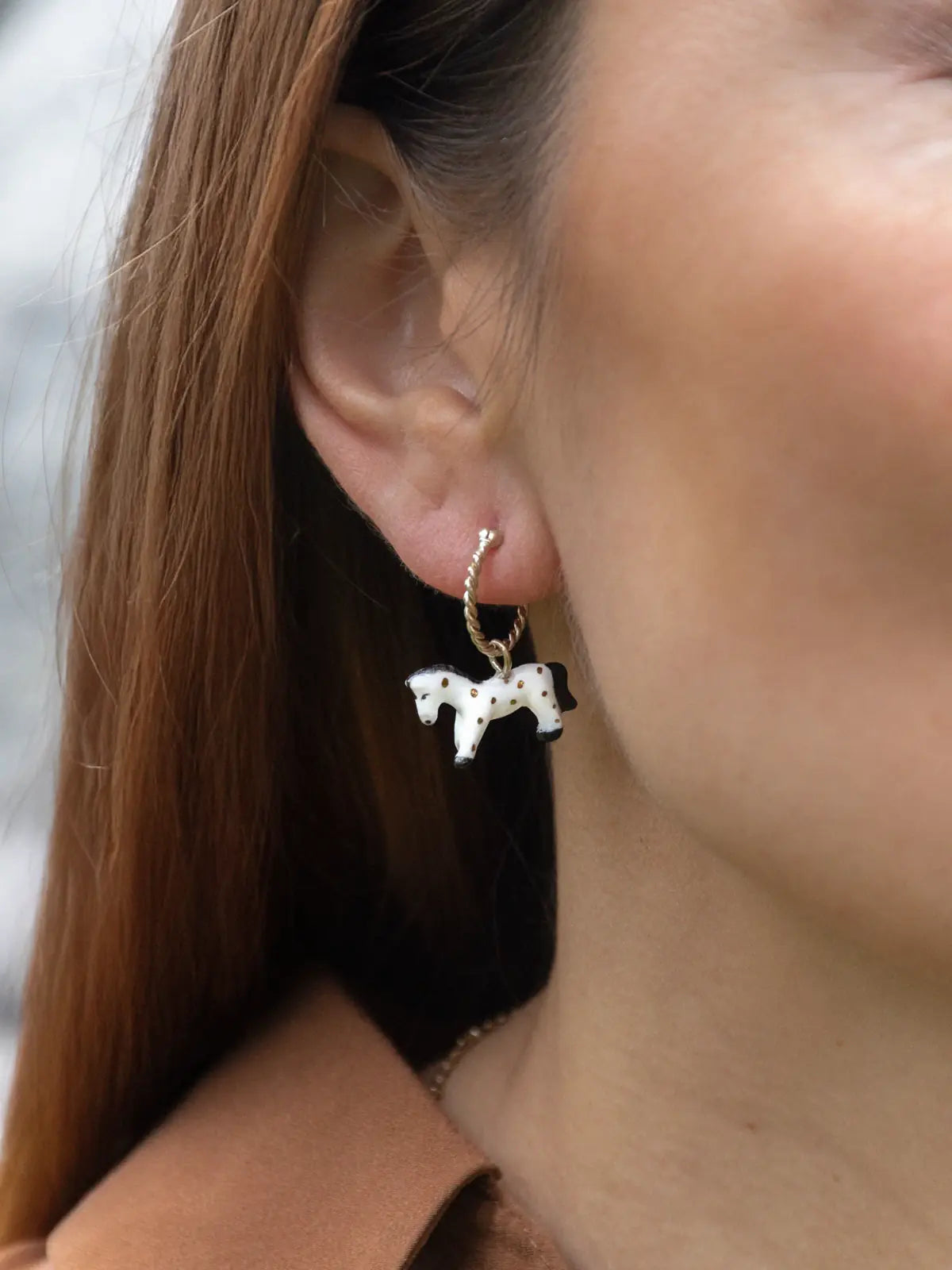 Boucle d'oreille en porcelaine et laiton doré à l'or fin.