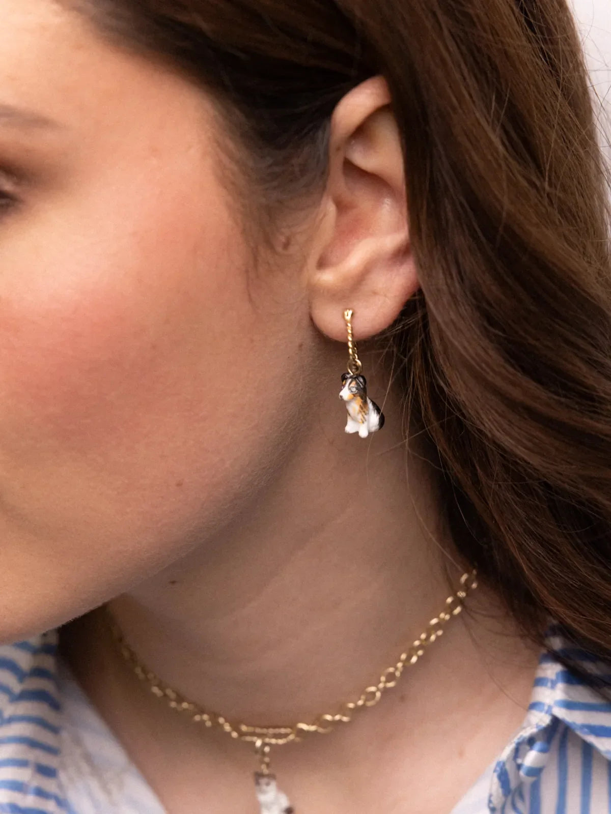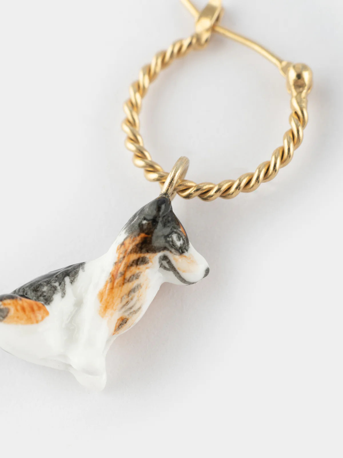 Boucle d'oreille en porcelaine et laiton doré à l'or fin. Métal certifié sans nickel et sans risque d’allergie.