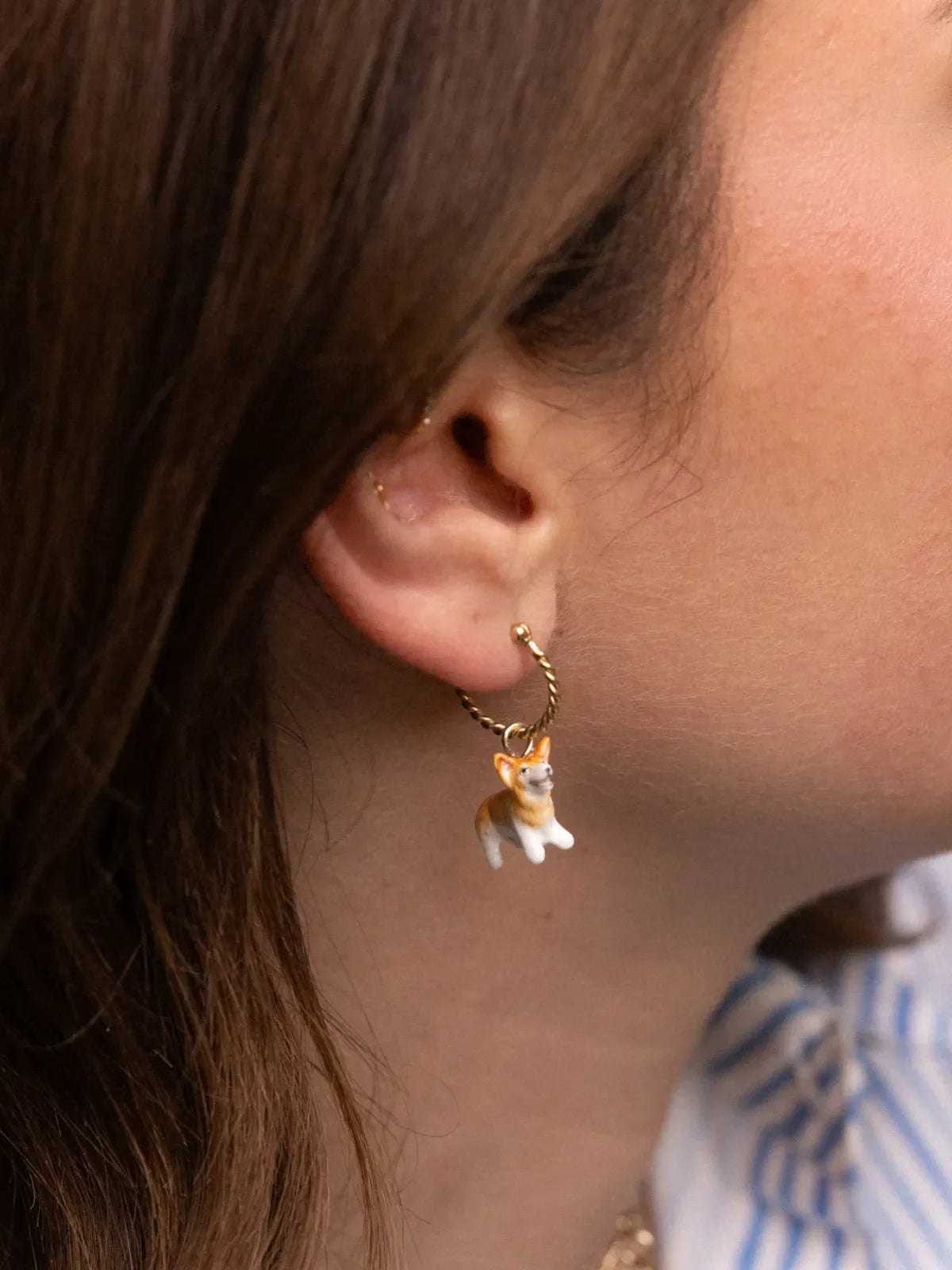 Boucle d'oreille en porcelaine et laiton doré à l'or fin. Métal certifié sans nickel et sans risque d’allergie.