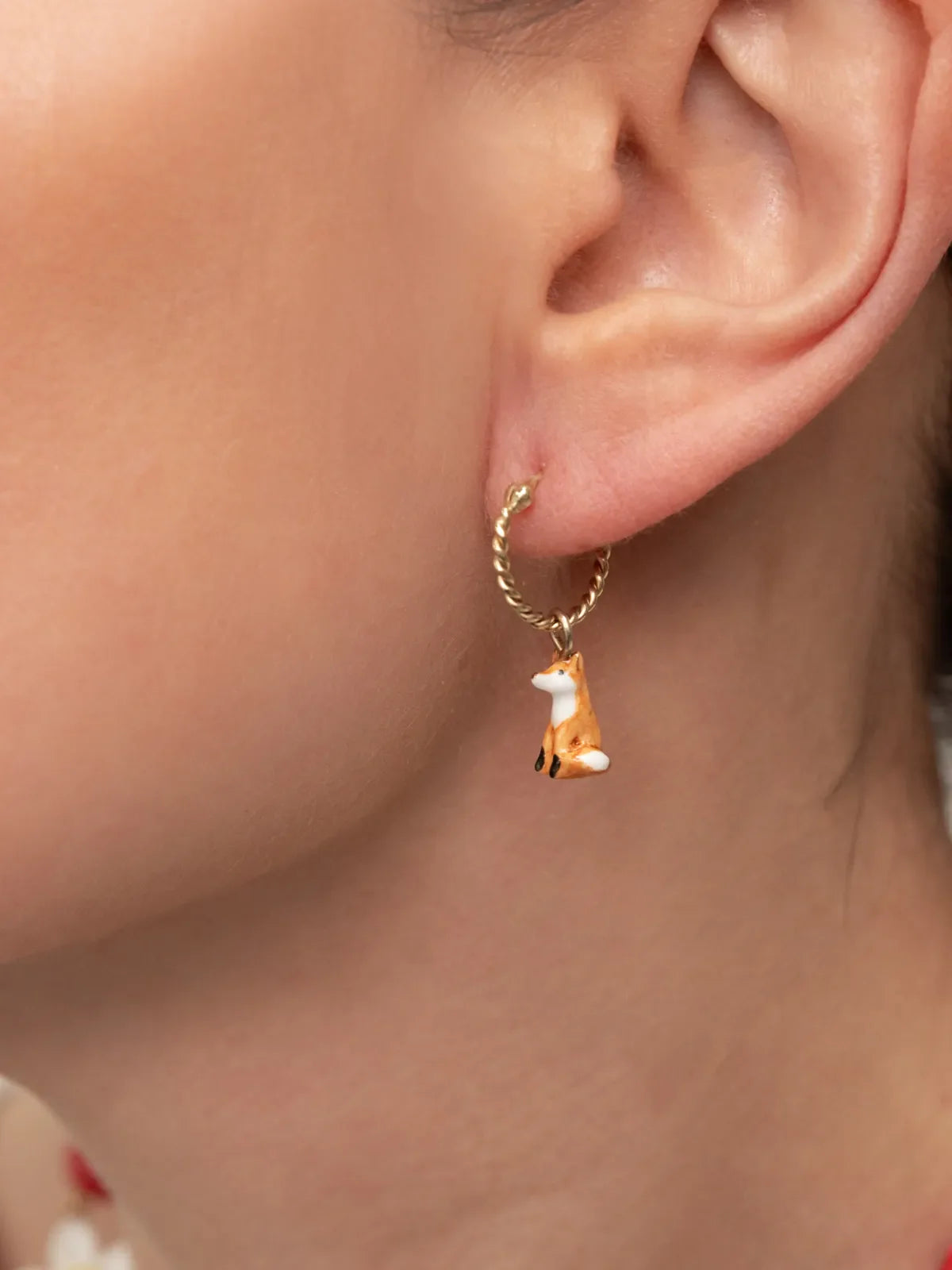 Boucle d'oreille en porcelaine et laiton doré à l'or fin. Métal certifié sans nickel et sans risque d’allergie.