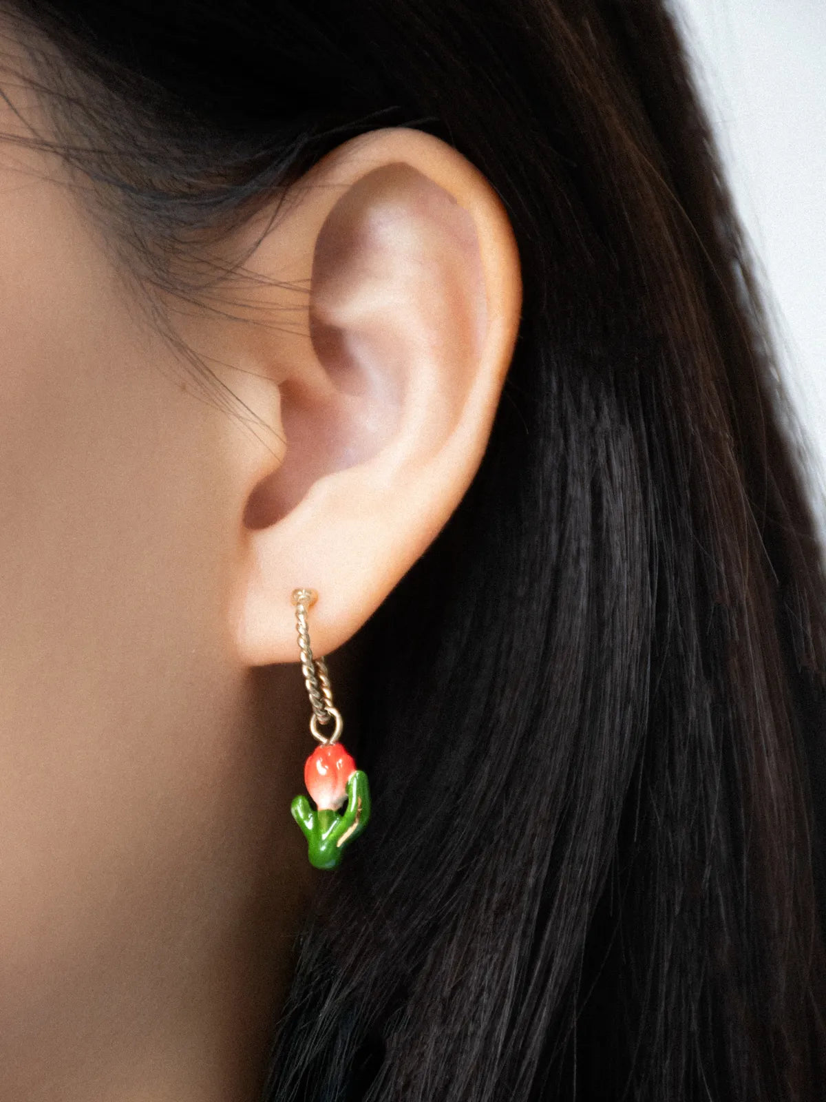Boucle d'oreille en porcelaine et laiton doré à l'or fin. Métal certifié sans nickel et sans risque d’allergie.