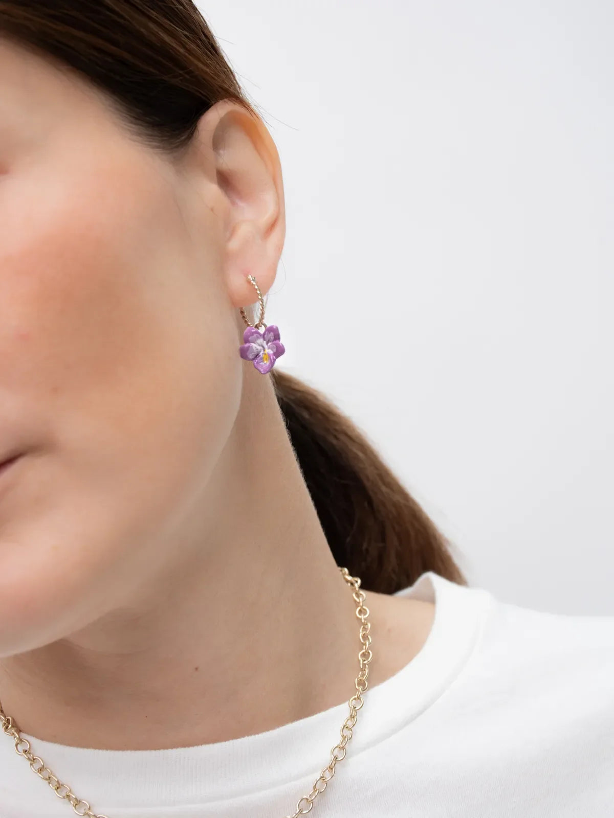 Boucle d'oreille en porcelaine et laiton doré à l'or fin. Métal certifié sans nickel et sans risque d’allergie.